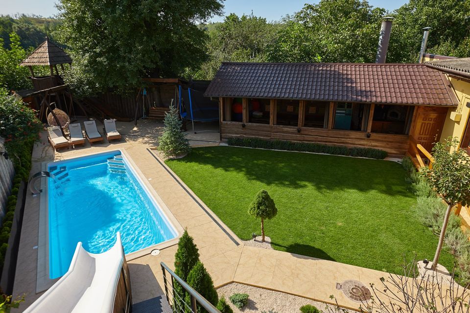 с.Щербанивка. Загородном комплексе расположен 35 км от Киева. Просторный банкетный зал 15 человек. Каминный зал выполнен в стиле лофт. Настольный футбол — кикер, русский бильярд, караоке танцпол, светомузыка, стробоскоп, музыкальная установка, дым машина. На профессиональной кухне есть всё самое необходимое для приготовления вкусных блюд и сервировки стола. Русская баня на дровах, водопад. Во дворе расположена спа-джакузи, большой открытый бассейн (подогревается даже зимой). В вашем распоряжении есть 4 отдельные спальни, с постелью. Общее количество спальных мест 20. WiFi. На летней террасе расположен 8ми метровый бассейн с современной системой очистки и подогрева воды, противотоком и подсветкой. 9ти метровая горка с подачей воды. Вокруг бассейна расположены удобные шезлонги. Для детей есть батут и площадка с горкой и качелями. Уютная беседка рассчитана на 15 человек, в которой есть всё необходимое — профессиональный мангал, помпейская печь, барная стойка, мягкие подушки. В вечернее время суток вся территория освещается. Цена : 18 000 грн в сутки до 15 чел. Цена 23 000 грн в сутки до 20 человек. Возвратный страховой залог за дом обязательно! Обращайтесь к нам для уточнения условий и цен. Резервируйте заранее.