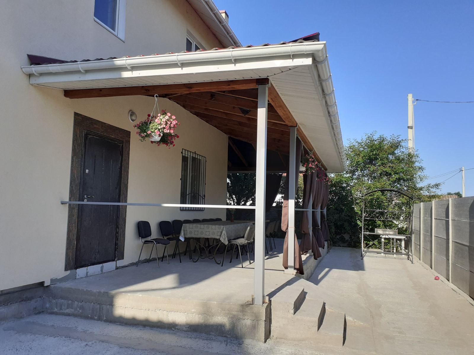 Дом 200м2, зал 100м2. 40 посадочных мест, встроенная кухня, 7 разд. спален, 18 спальных мест, 4 санузла 2 душевые, тёплые полы, крытая терраса 30м2, мангал, 3 паркоместа на территории и возле забора 4. Цена в выходные 16000грн. В будни дешевле.